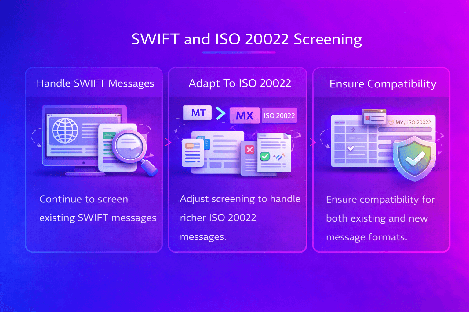 As payment infrastructures evolve toward ISO 20022 messaging, financial institutions must ensure that their screening systems can fully interpret the richer data contained within these new message formats.